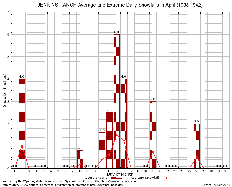 April Average and Extreme Daily Snowfall AMounts (1938-1942)