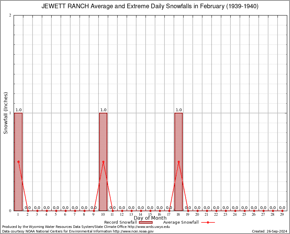 February Average and Extreme Daily Snowfall AMounts (1939-1940)