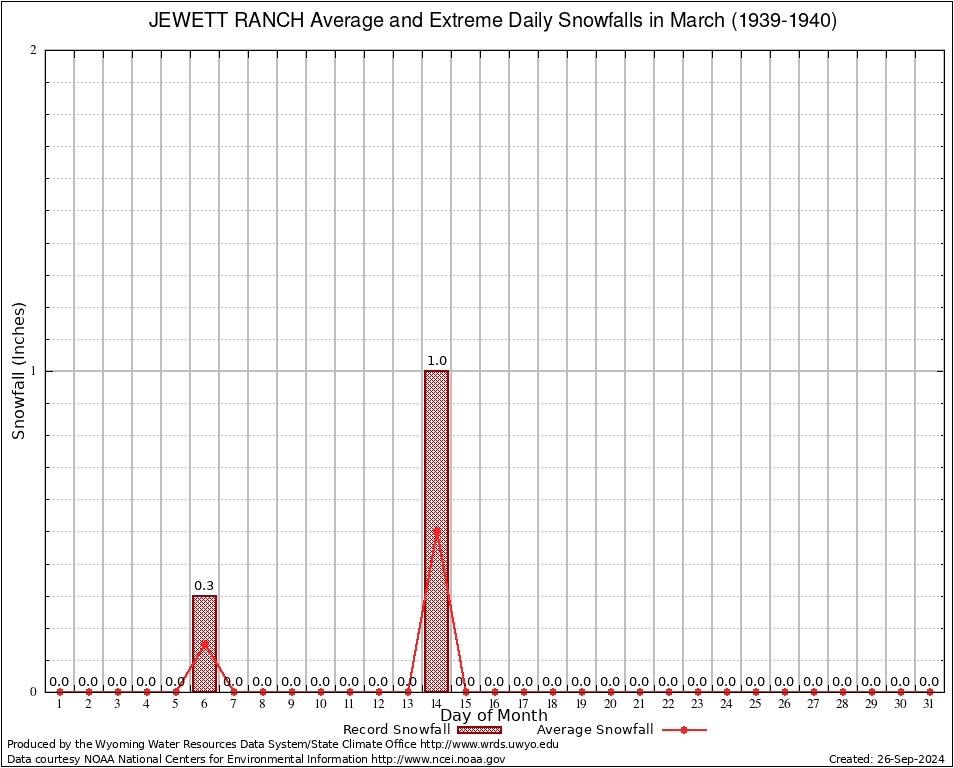 March Average and Extreme Daily Snowfall AMounts (1939-1940)