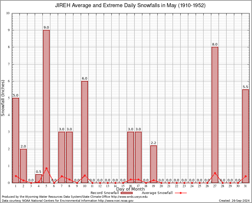 JIREH (484970) May Average and Extreme Daily Snowfall AMounts (1910-1952) To index page for JIREH