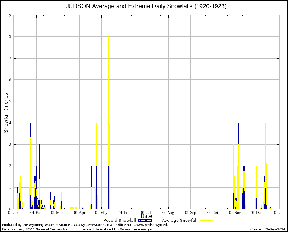 JUDSON (484995) Annual Average and Extreme Daily Snowfall AMounts (1920-1923) To index page for JUDSON