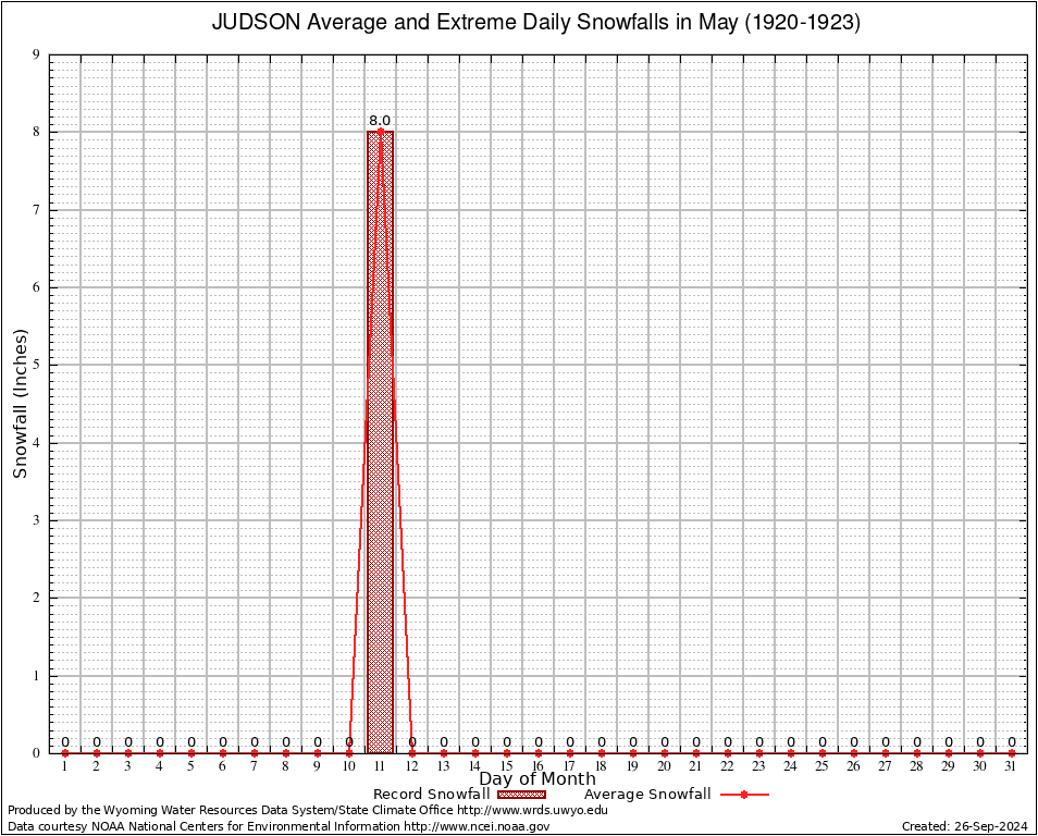 JUDSON (484995) May Average and Extreme Daily Snowfall AMounts (1920-1923) To index page for JUDSON