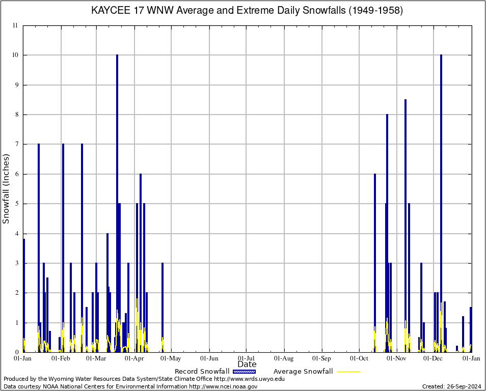 Annual Average and Extreme Daily Snowfall AMounts (1949-1958)