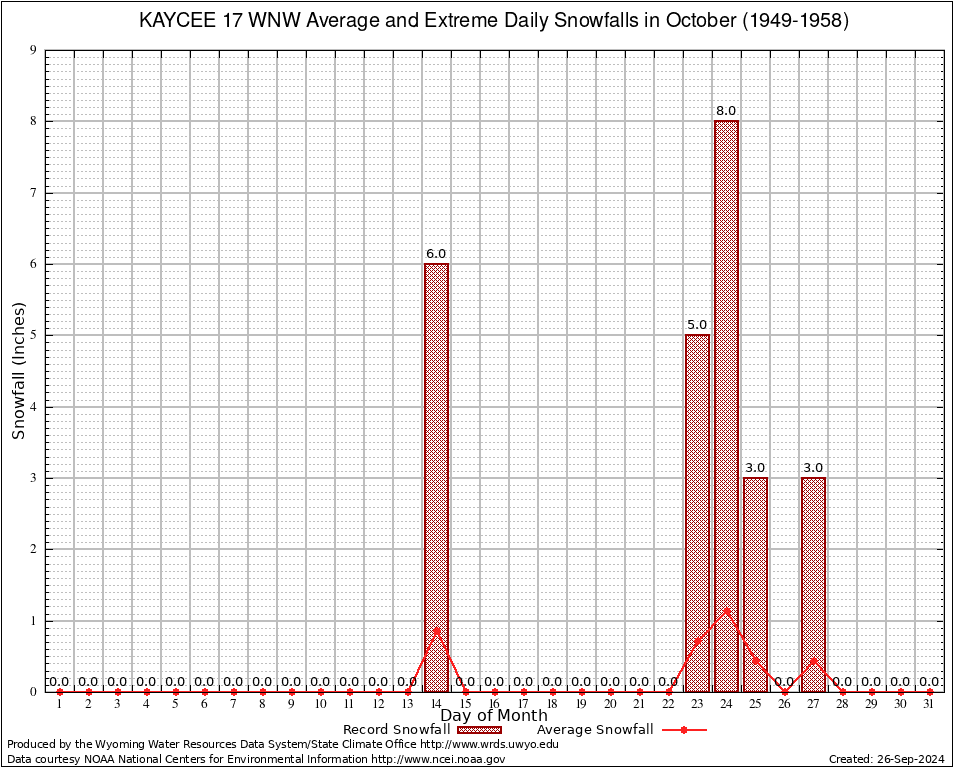 October Average and Extreme Daily Snowfall AMounts (1949-1958)
