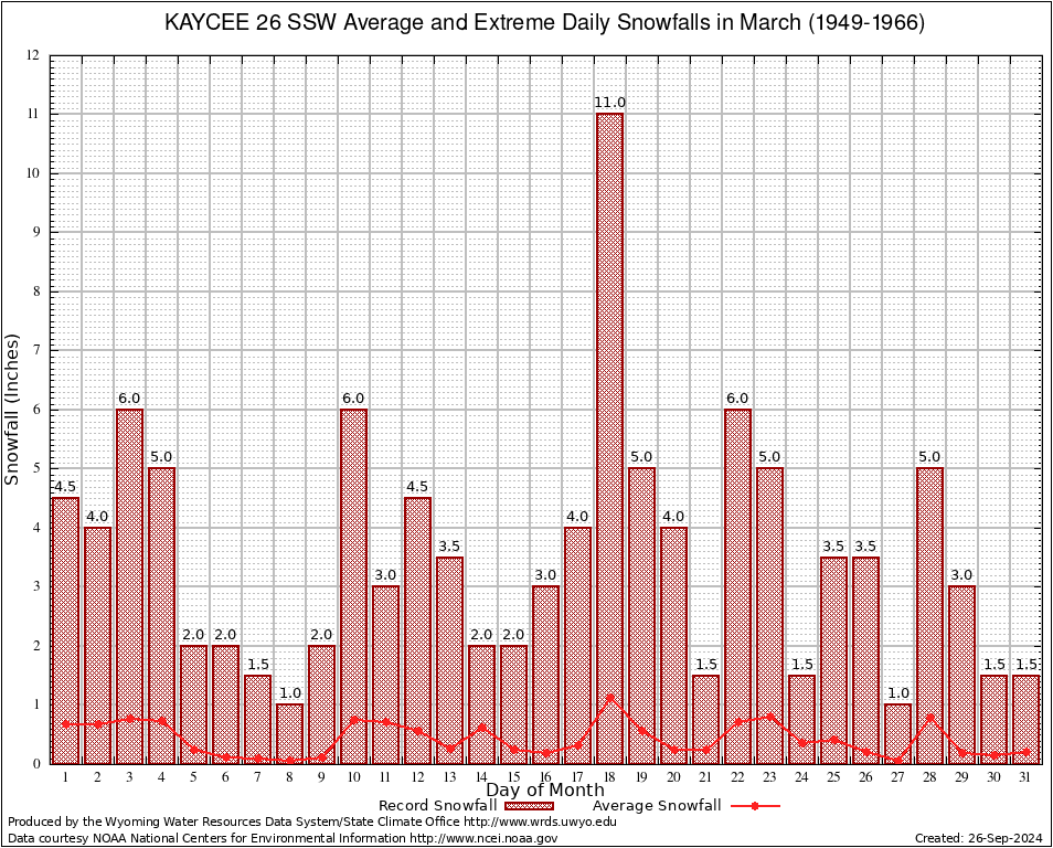 March Average and Extreme Daily Snowfall AMounts (1949-1966)