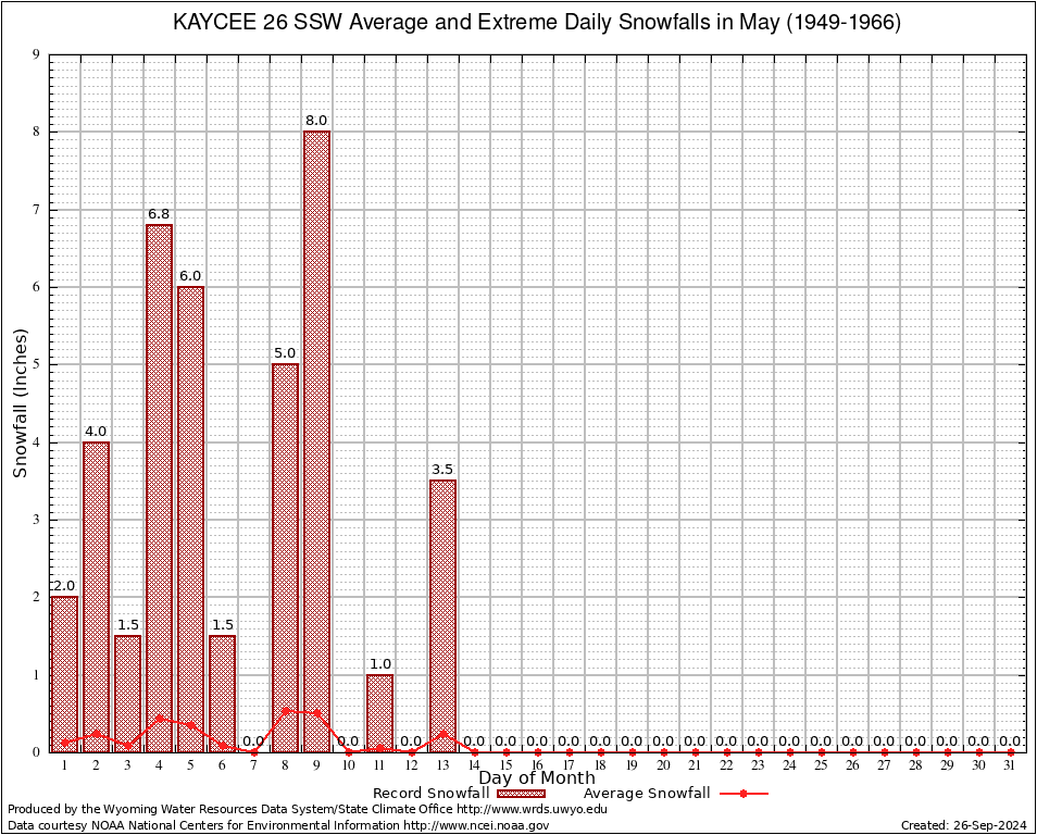 May Average and Extreme Daily Snowfall AMounts (1949-1966)