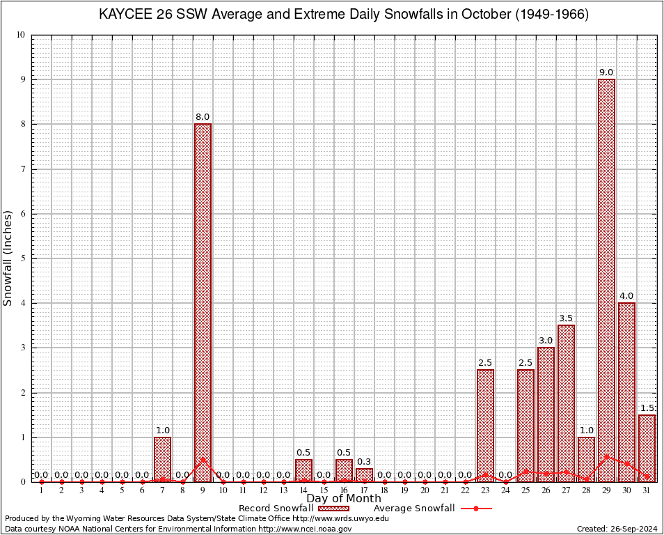 October Average and Extreme Daily Snowfall AMounts (1949-1966)