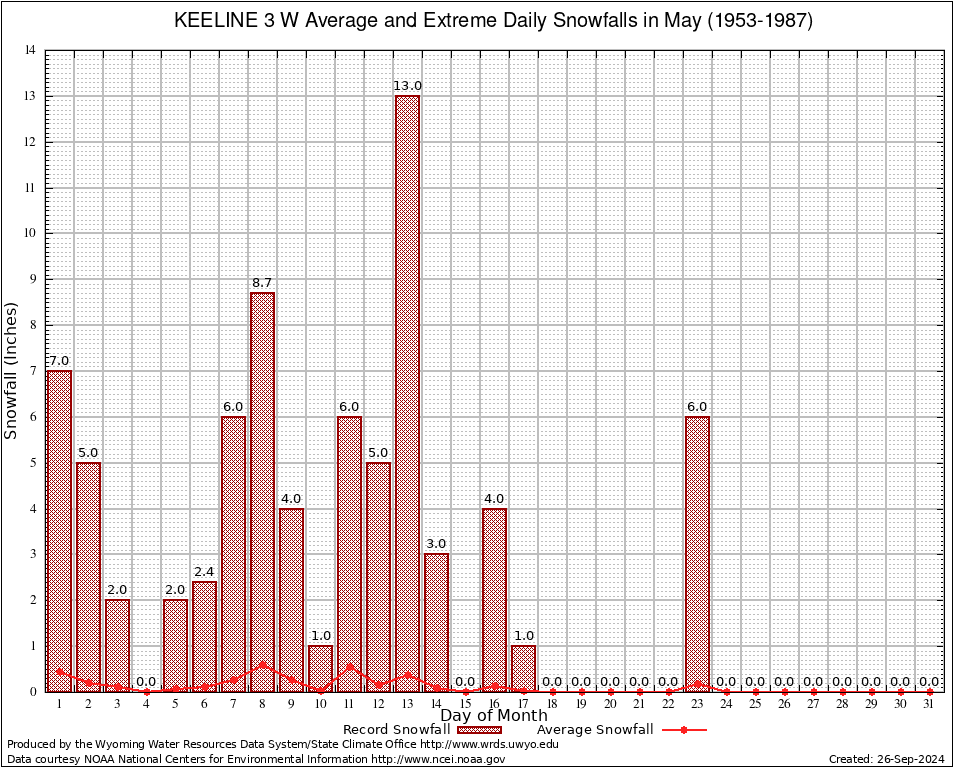 May Average and Extreme Daily Snowfall AMounts (1953-1987)