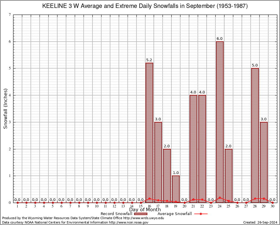 September Average and Extreme Daily Snowfall AMounts (1953-1987)