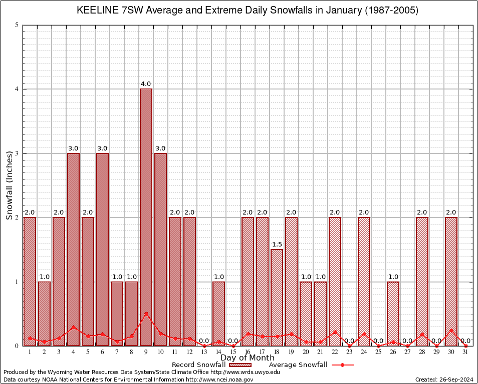 January Average and Extreme Daily Snowfall AMounts (1987-2005)