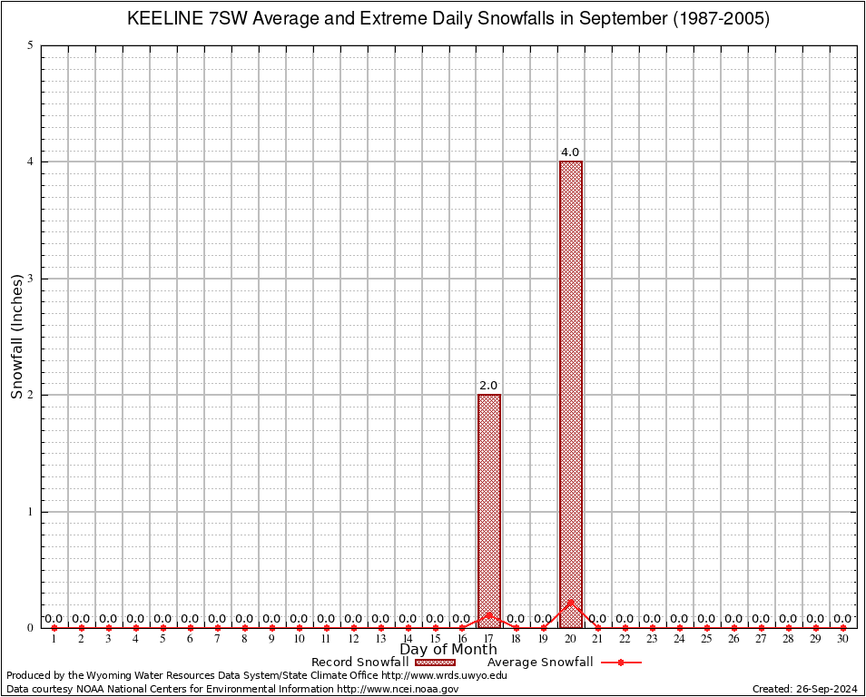 September Average and Extreme Daily Snowfall AMounts (1987-2005)
