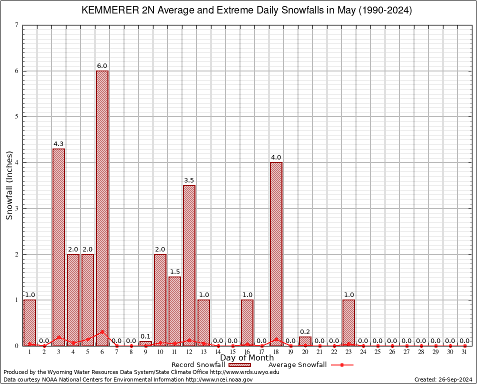 May Average and Extreme Daily Snowfall AMounts (1990-2024)