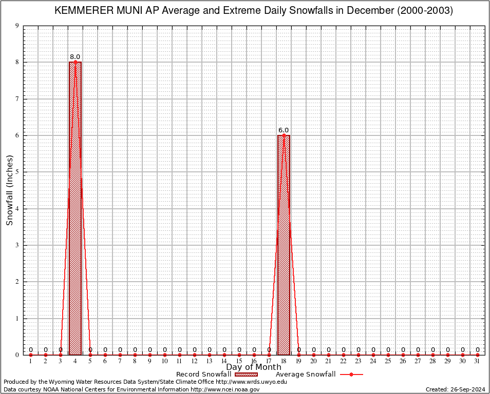 December Average and Extreme Daily Snowfall AMounts (2000-2003)