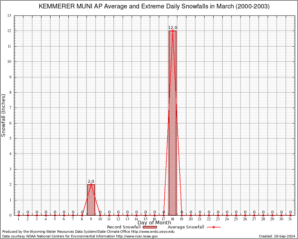 March Average and Extreme Daily Snowfall AMounts (2000-2003)