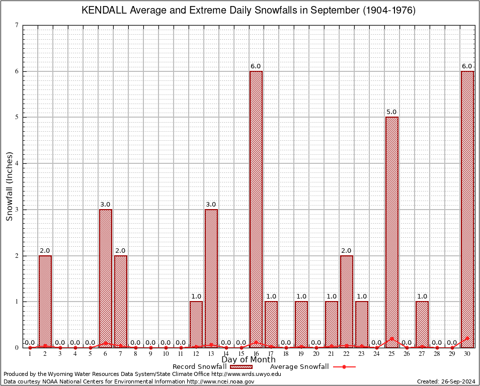 KENDALL (485115) September Average and Extreme Daily Snowfall AMounts (1904-1976) To index page for KENDALL