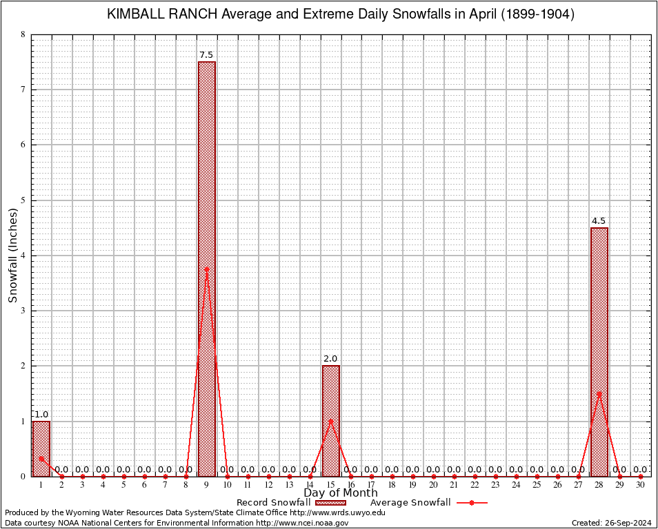 April Average and Extreme Daily Snowfall AMounts (1899-1904)