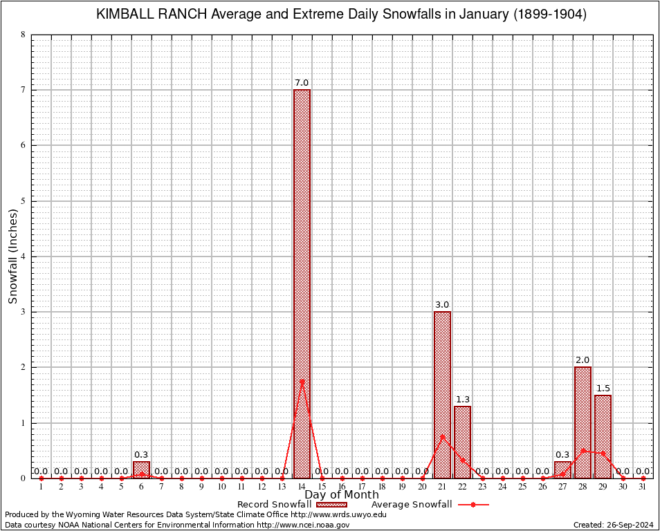January Average and Extreme Daily Snowfall AMounts (1899-1904)