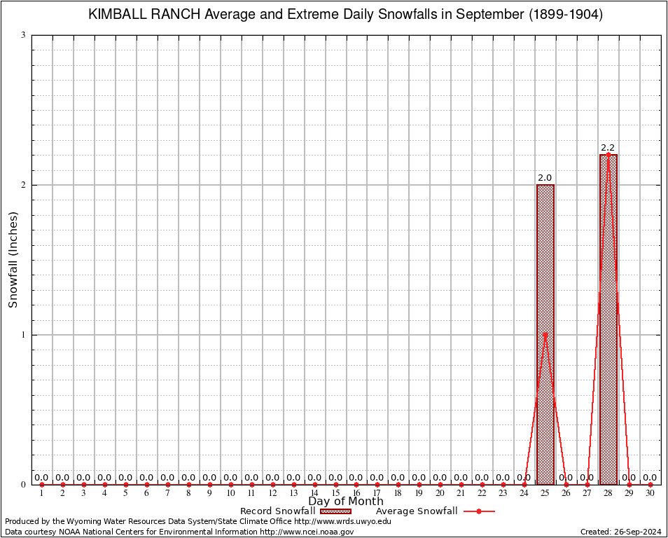 September Average and Extreme Daily Snowfall AMounts (1899-1904)