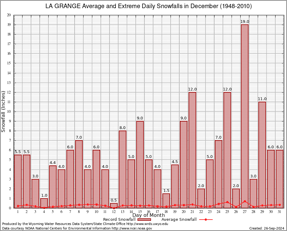 LA GRANGE (485260) December Average and Extreme Daily Snowfall AMounts (1948-2010) To index page for LA GRANGE