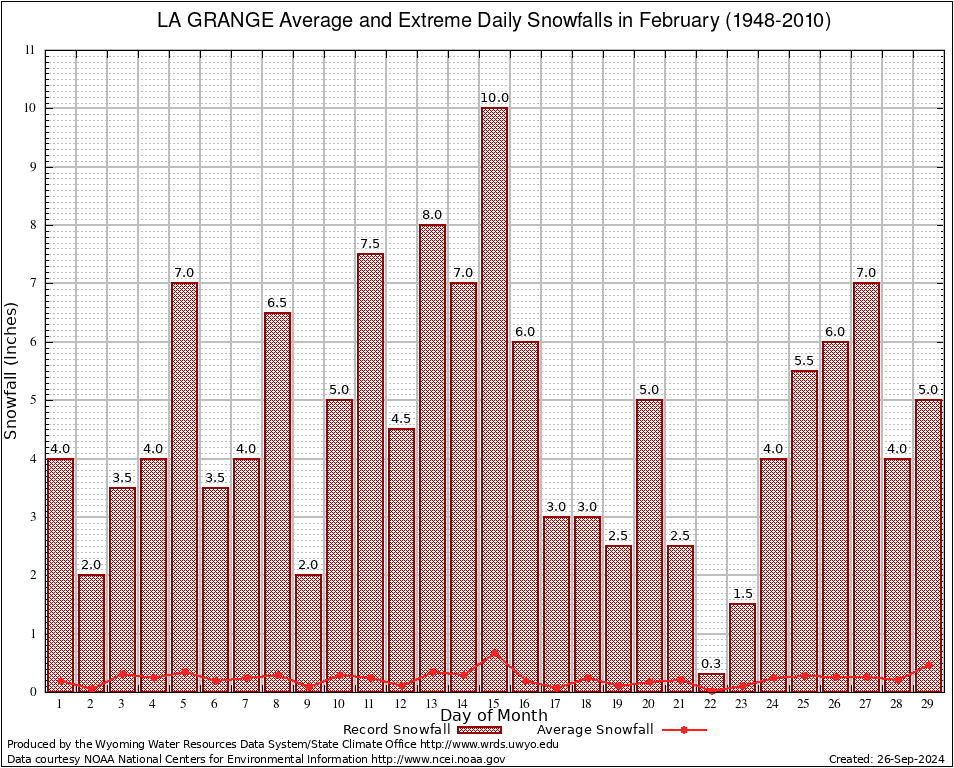 LA GRANGE (485260) February Average and Extreme Daily Snowfall AMounts (1948-2010) To index page for LA GRANGE