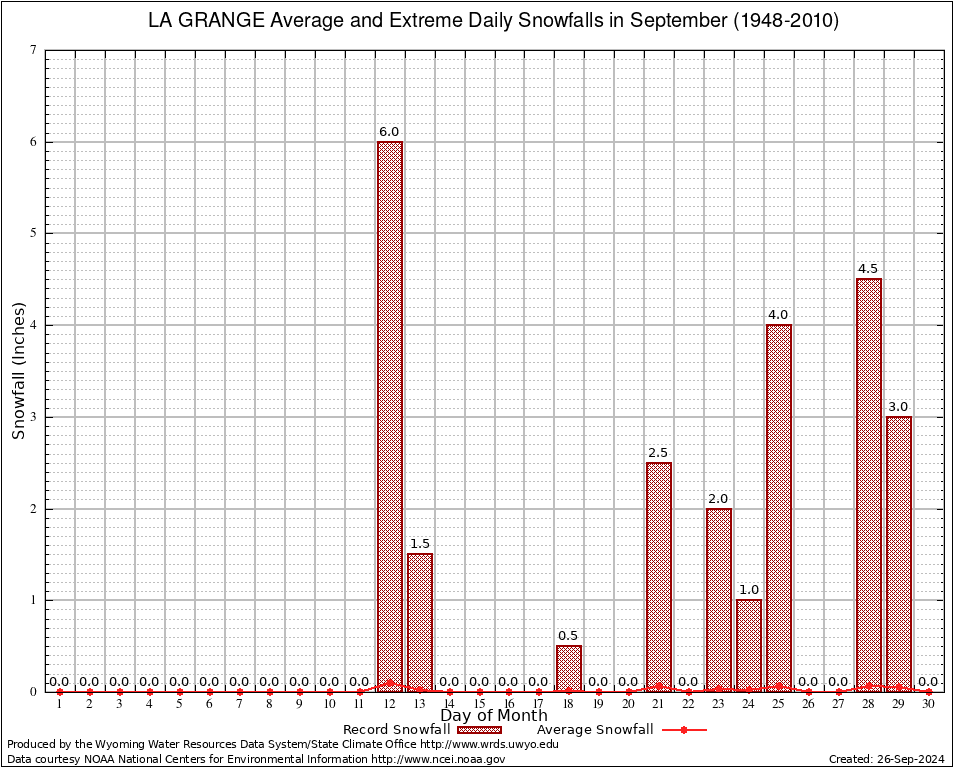 LA GRANGE (485260) September Average and Extreme Daily Snowfall AMounts (1948-2010) To index page for LA GRANGE