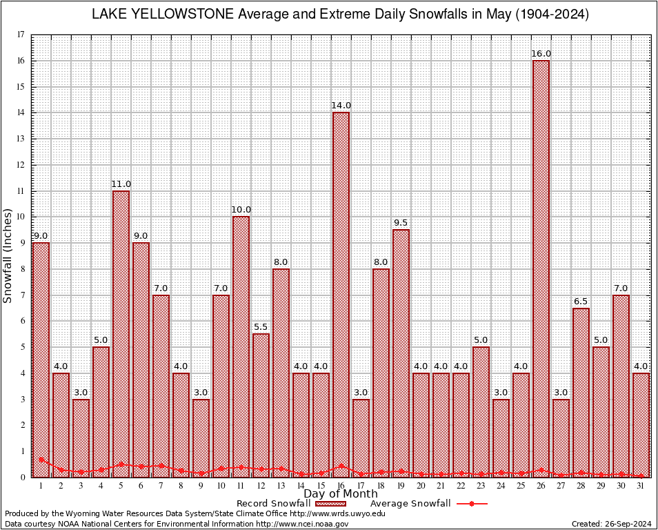 May Average and Extreme Daily Snowfall AMounts (1904-2024)