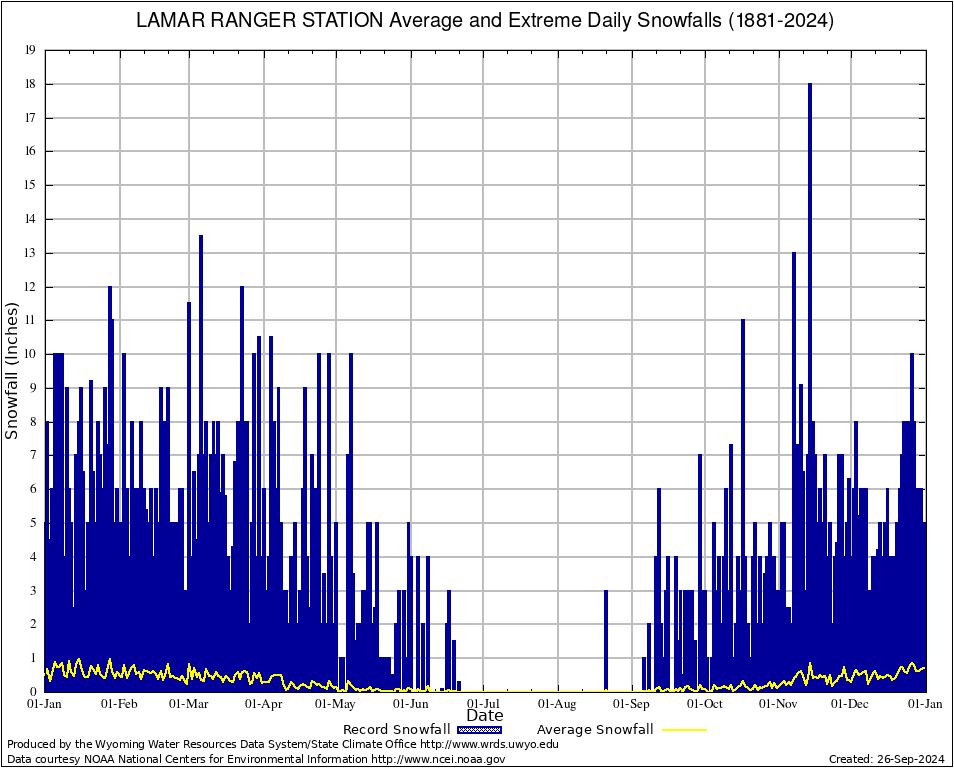Annual Average and Extreme Daily Snowfall AMounts (1881-2024)
