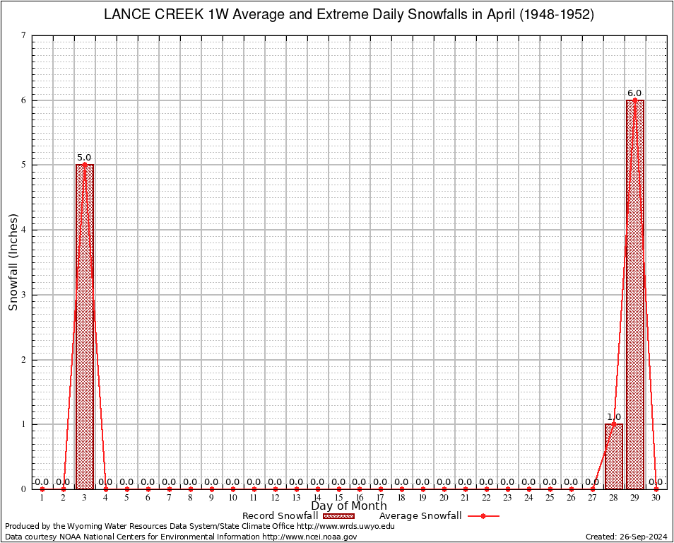 April Average and Extreme Daily Snowfall AMounts (1948-1952)
