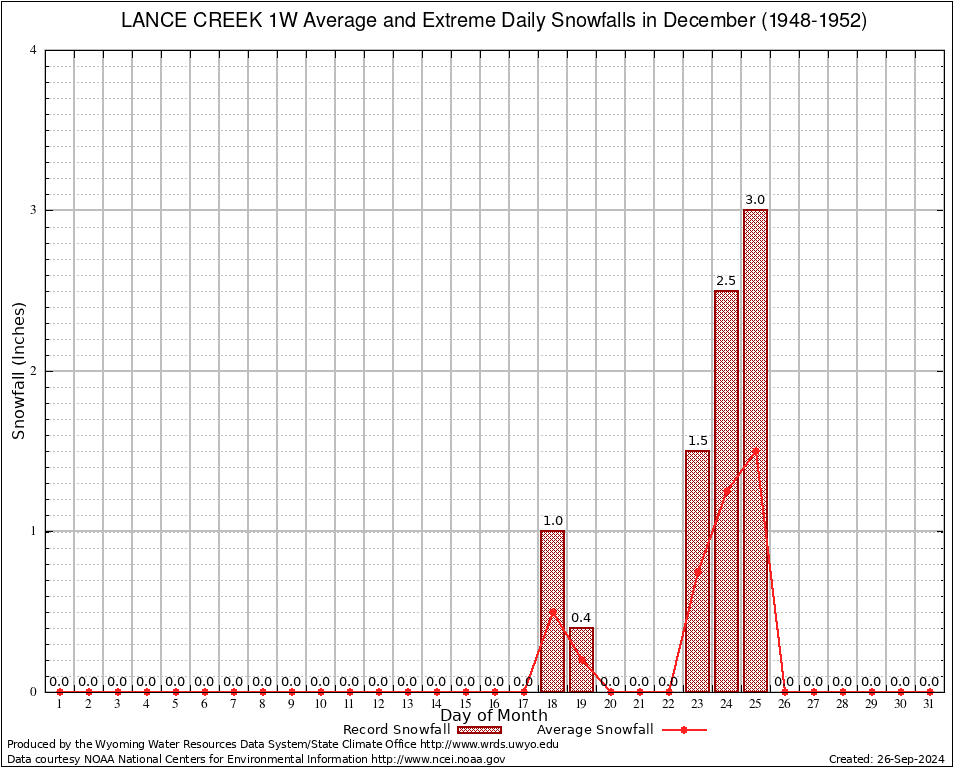 December Average and Extreme Daily Snowfall AMounts (1948-1952)