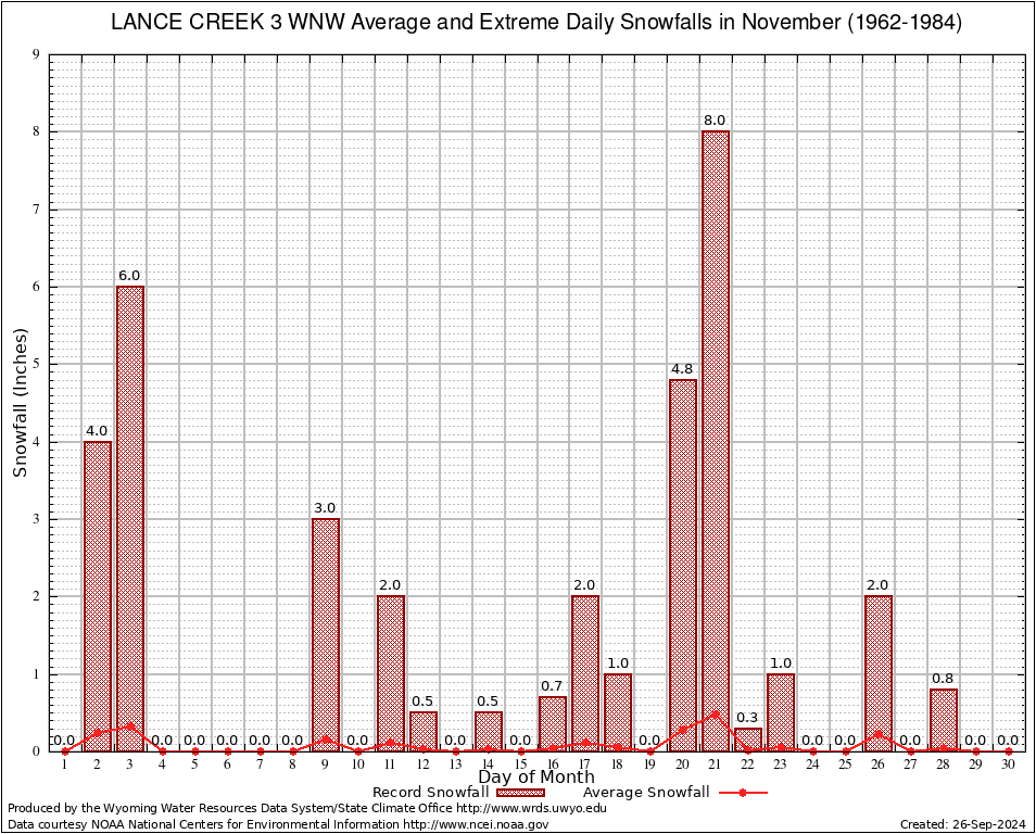 November Average and Extreme Daily Snowfall AMounts (1962-1984)
