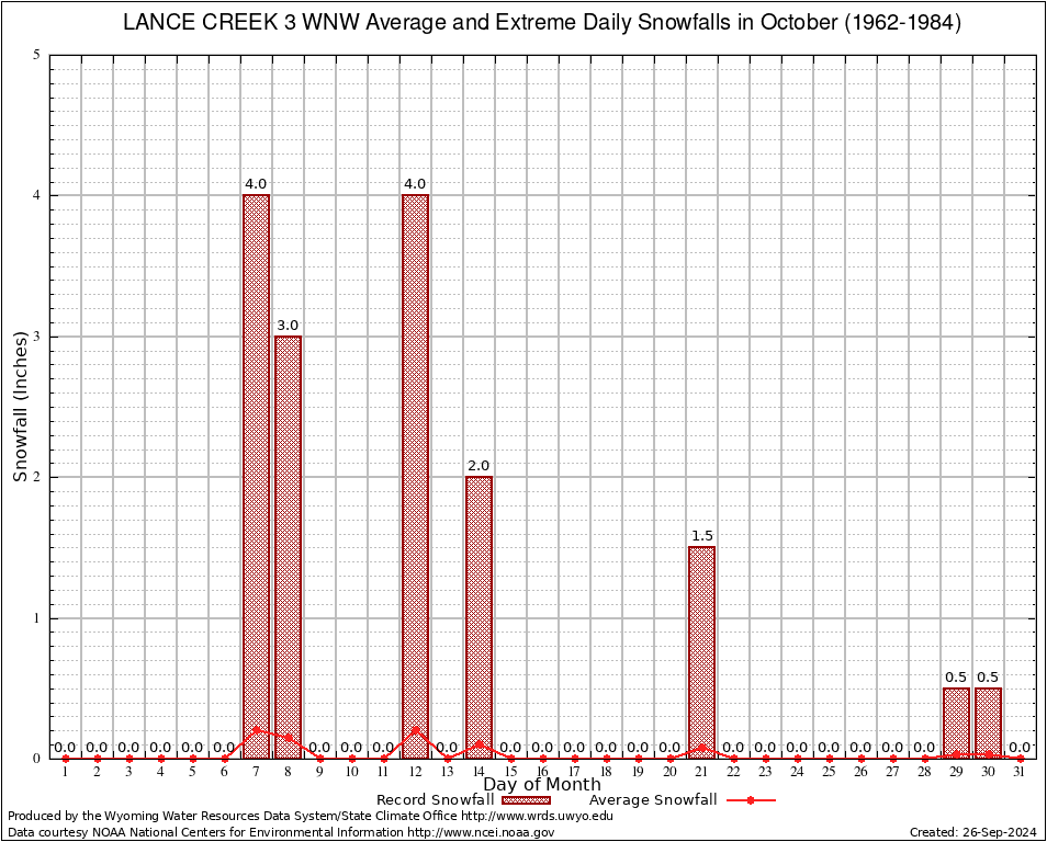 October Average and Extreme Daily Snowfall AMounts (1962-1984)