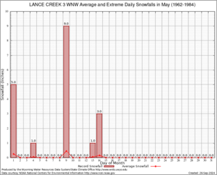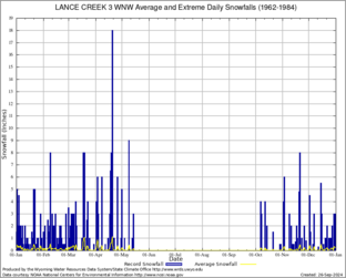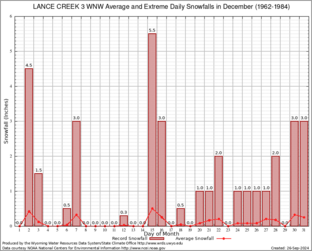 LANCE CREEK 3 WNW (485372) Record Extreme and Average Daily Snowfall (1962-1984) See Here for Other Stations
