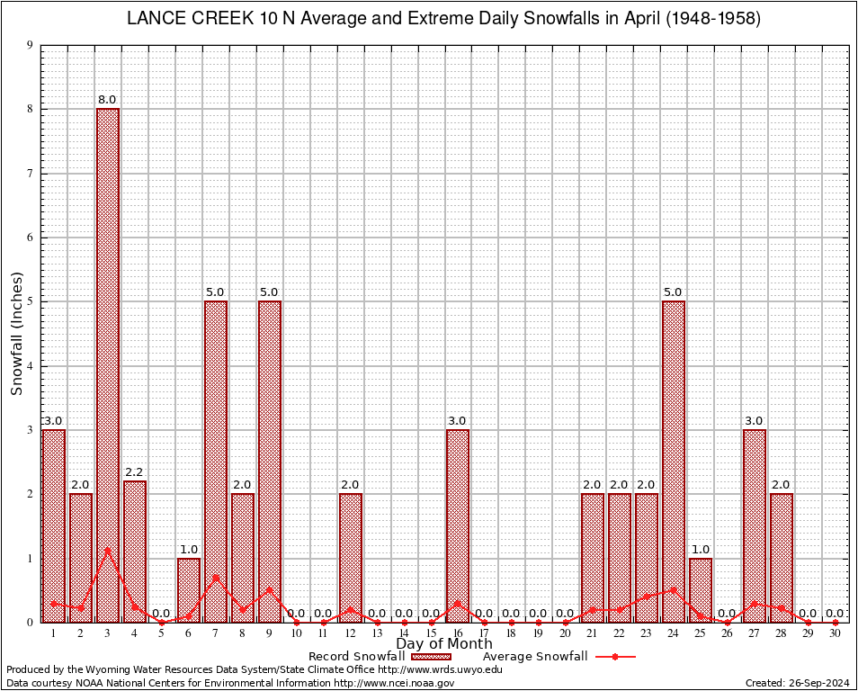 April Average and Extreme Daily Snowfall AMounts (1948-1958)