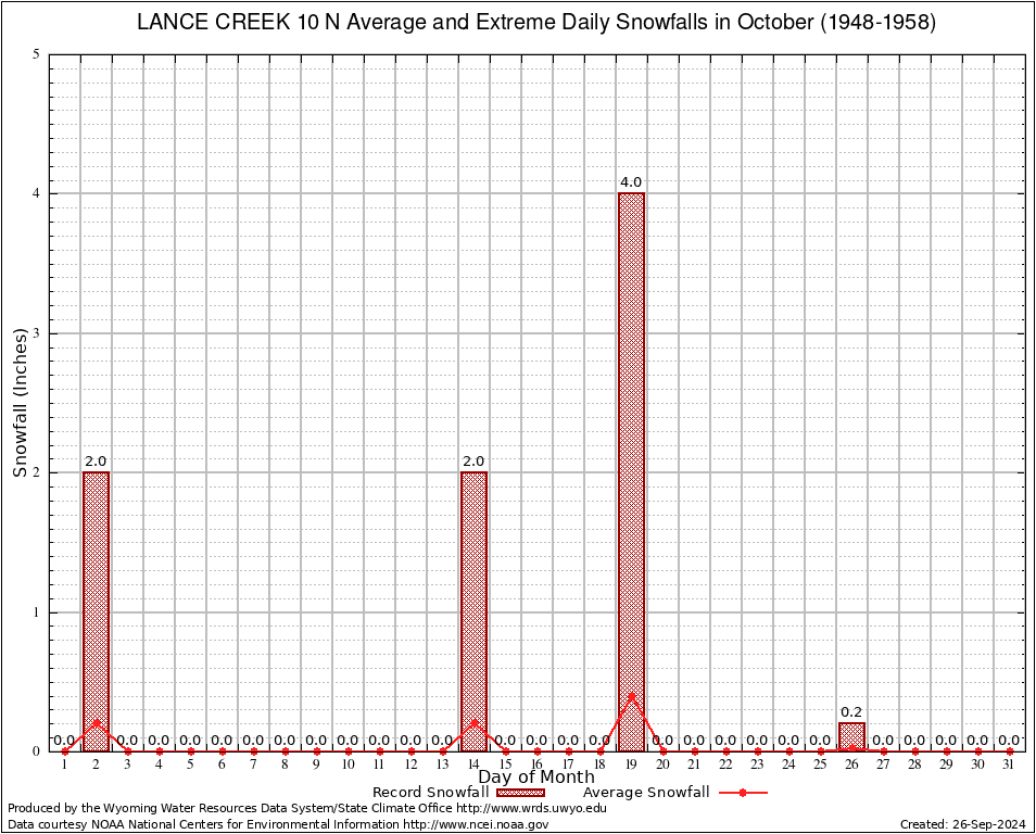 October Average and Extreme Daily Snowfall AMounts (1948-1958)