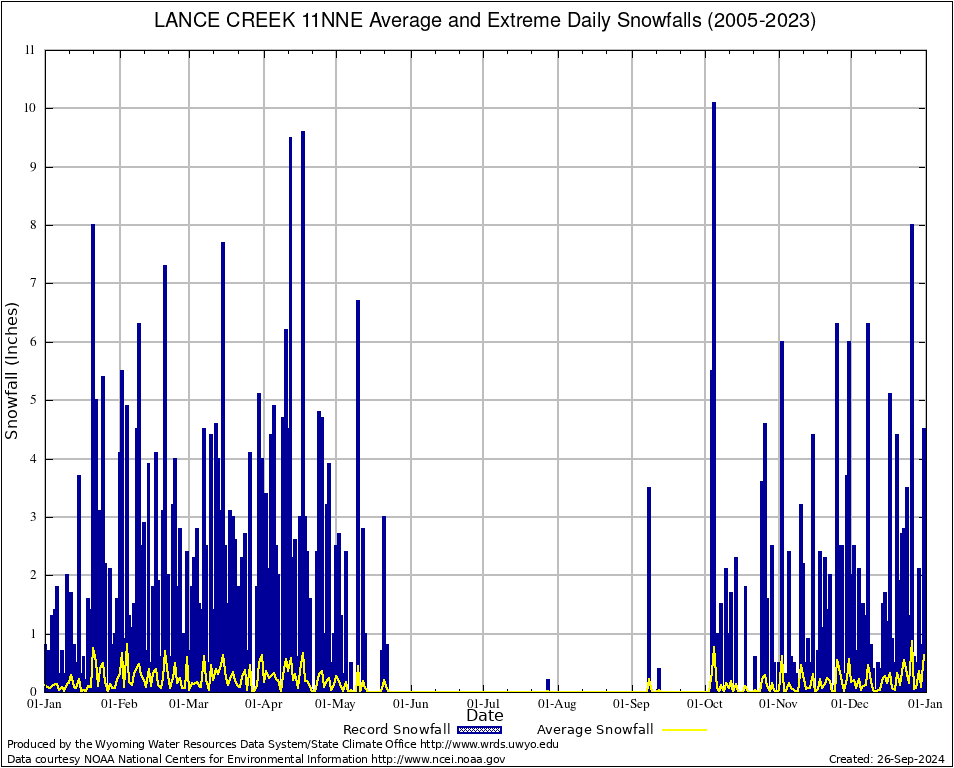 Annual Average and Extreme Daily Snowfall AMounts (2005-2023)