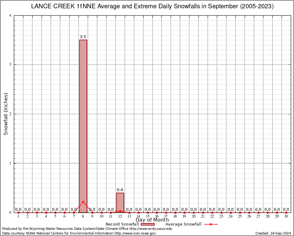September Average and Extreme Daily Snowfall AMounts (2005-2023)