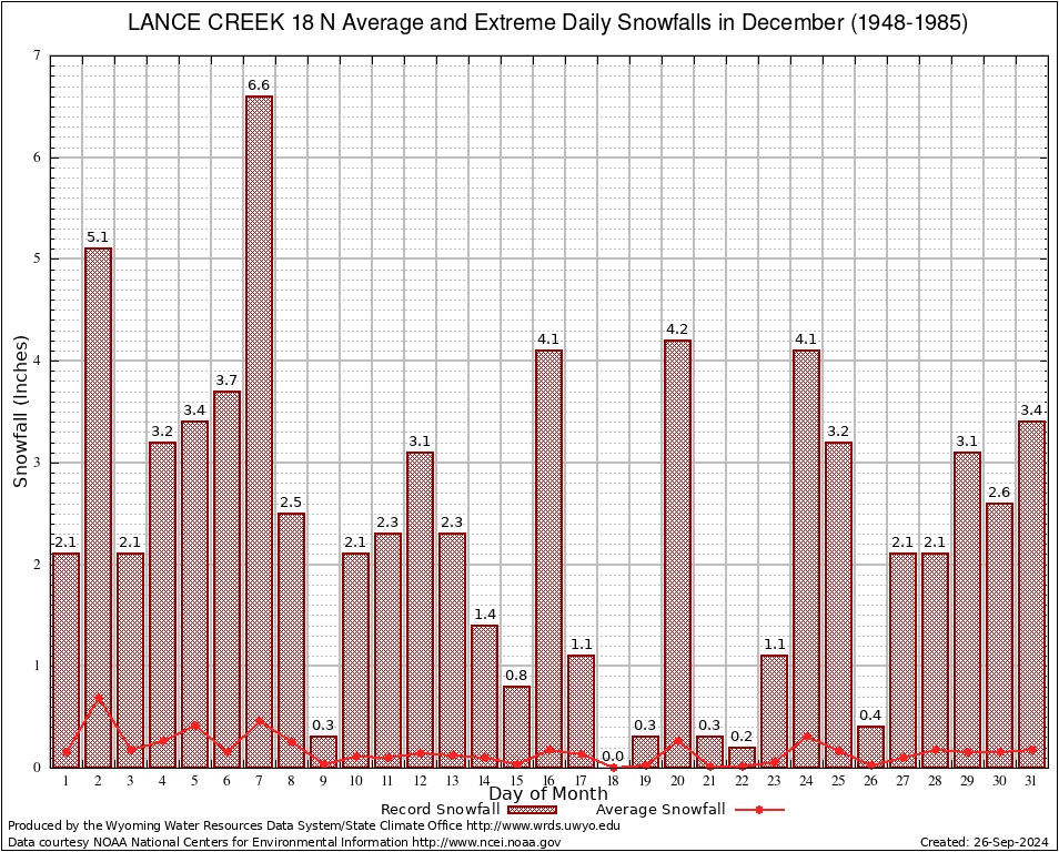 December Average and Extreme Daily Snowfall AMounts (1948-1985)