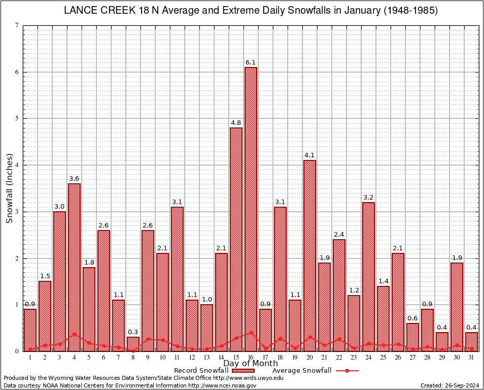 January Average and Extreme Daily Snowfall AMounts (1948-1985)