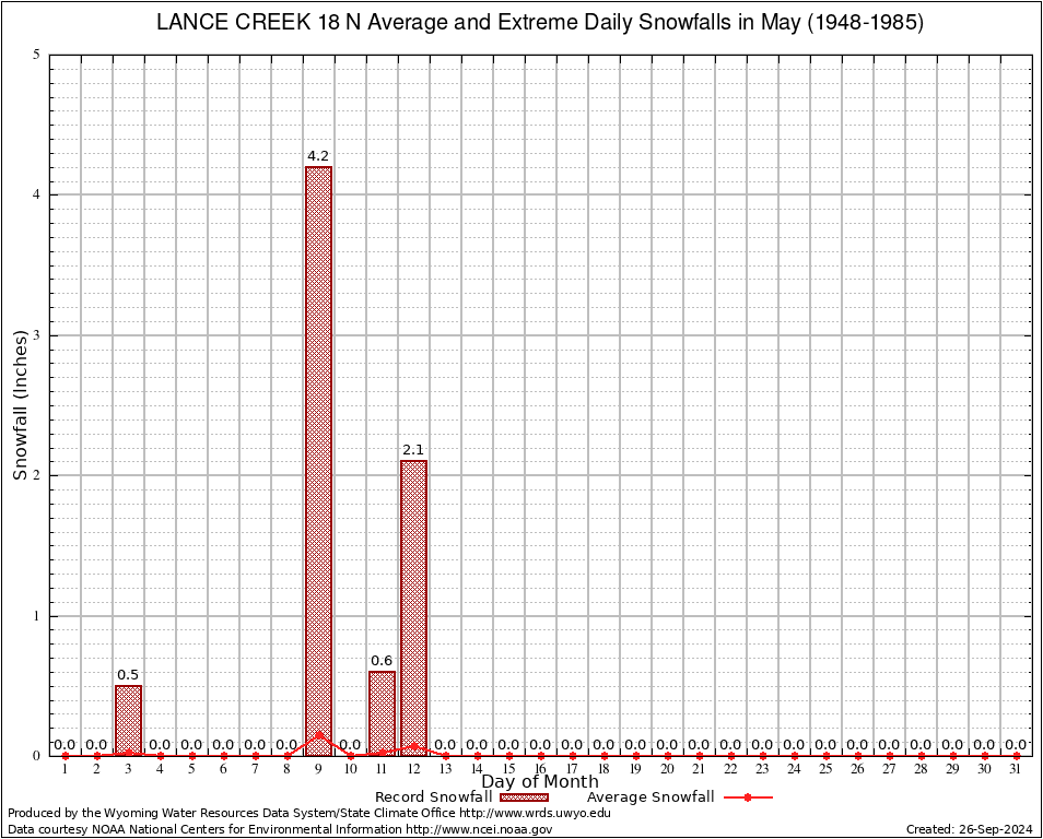 May Average and Extreme Daily Snowfall AMounts (1948-1985)