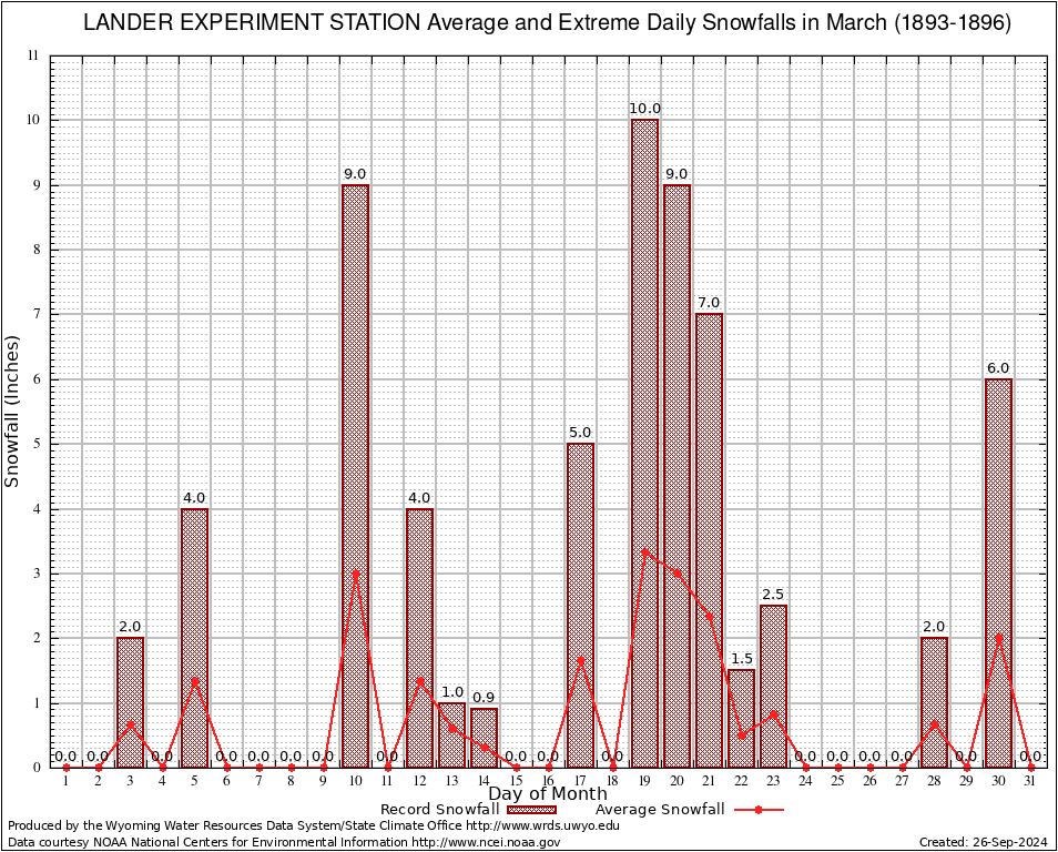March Average and Extreme Daily Snowfall AMounts (1893-1896)