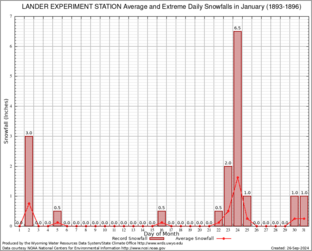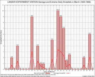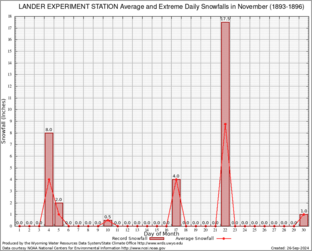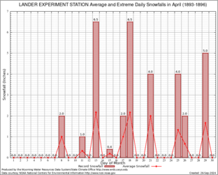 LANDER EXPERIMENT STATION (485385) Record Extreme and Average Daily Snowfall (1893-1896) See Here for Other Stations