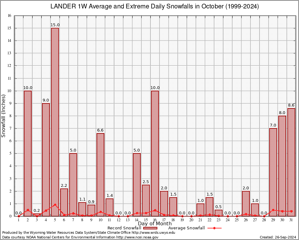 LANDER 1W (485392) October Average and Extreme Daily Snowfall AMounts (1999-2024) To index page for LANDER 1W