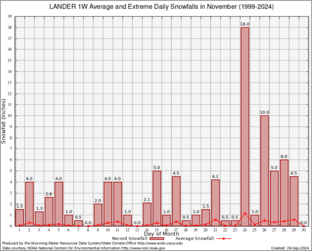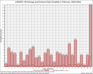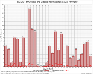 Record Extreme and Average Daily Snowfall (1999-2024)