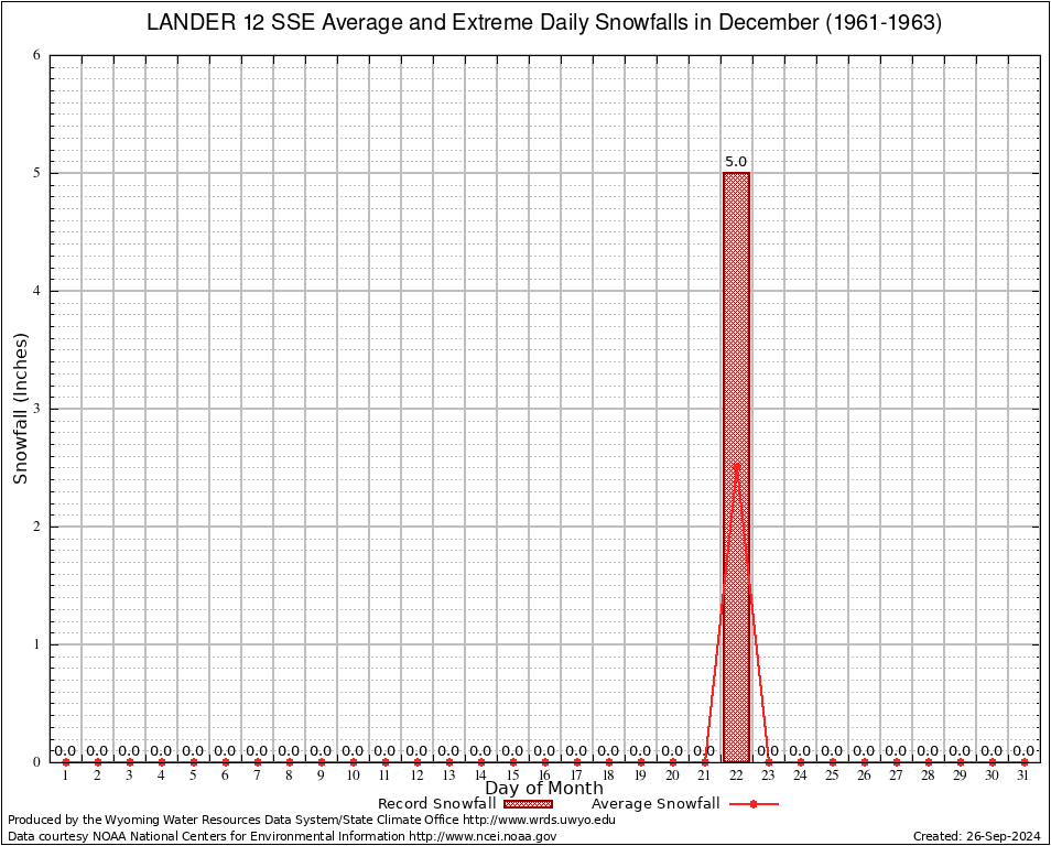 December Average and Extreme Daily Snowfall AMounts (1961-1963)