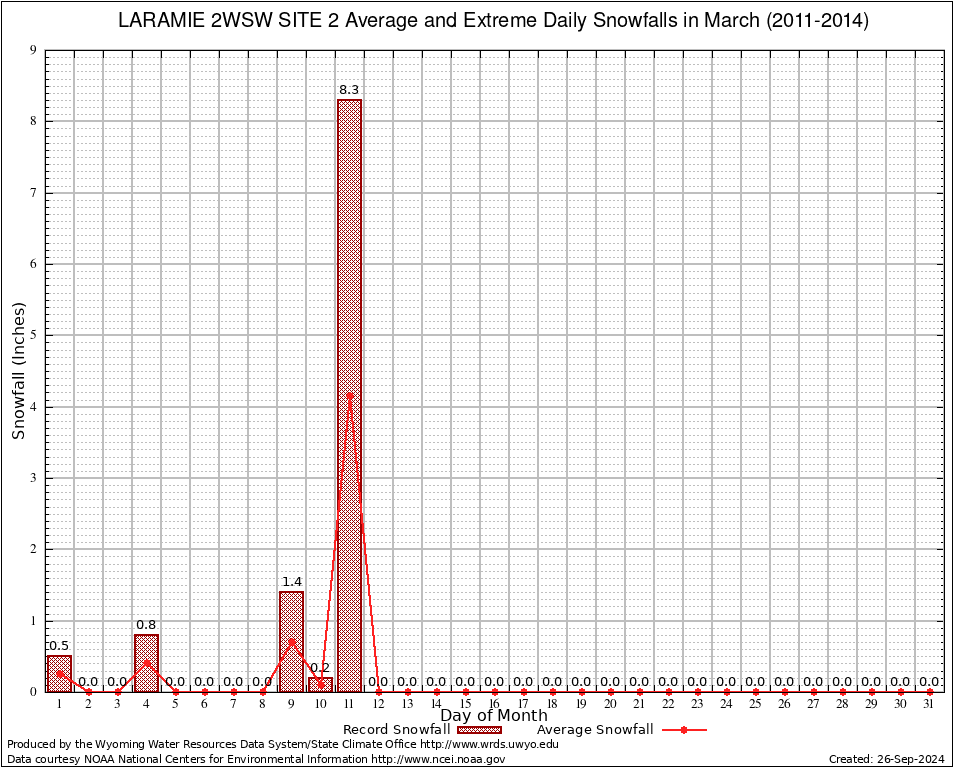 March Average and Extreme Daily Snowfall AMounts (2011-2014)
