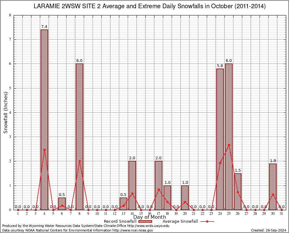 October Average and Extreme Daily Snowfall AMounts (2011-2014)
