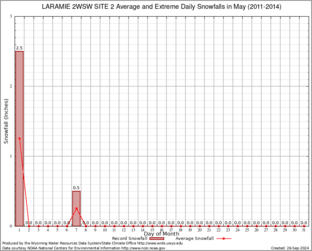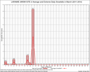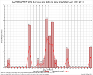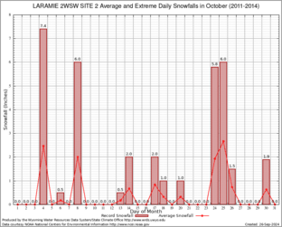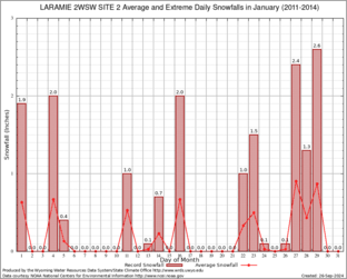 LARAMIE 2WSW SITE 2 (485416) Record Extreme and Average Daily Snowfall (2011-2014) See Here for Other Stations