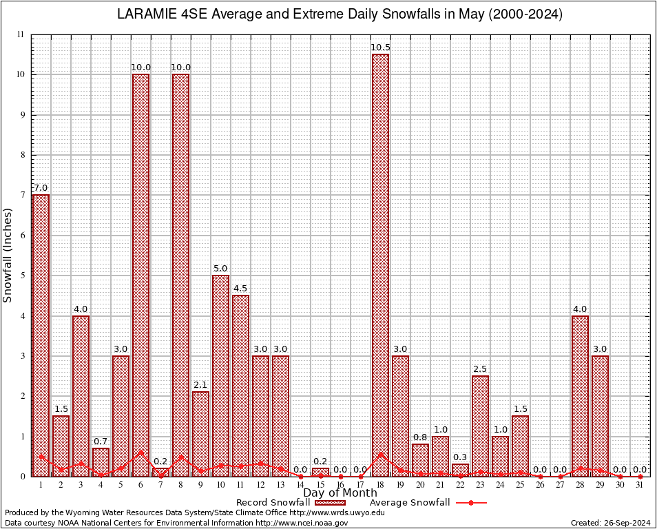 May Average and Extreme Daily Snowfall AMounts (2000-2024)