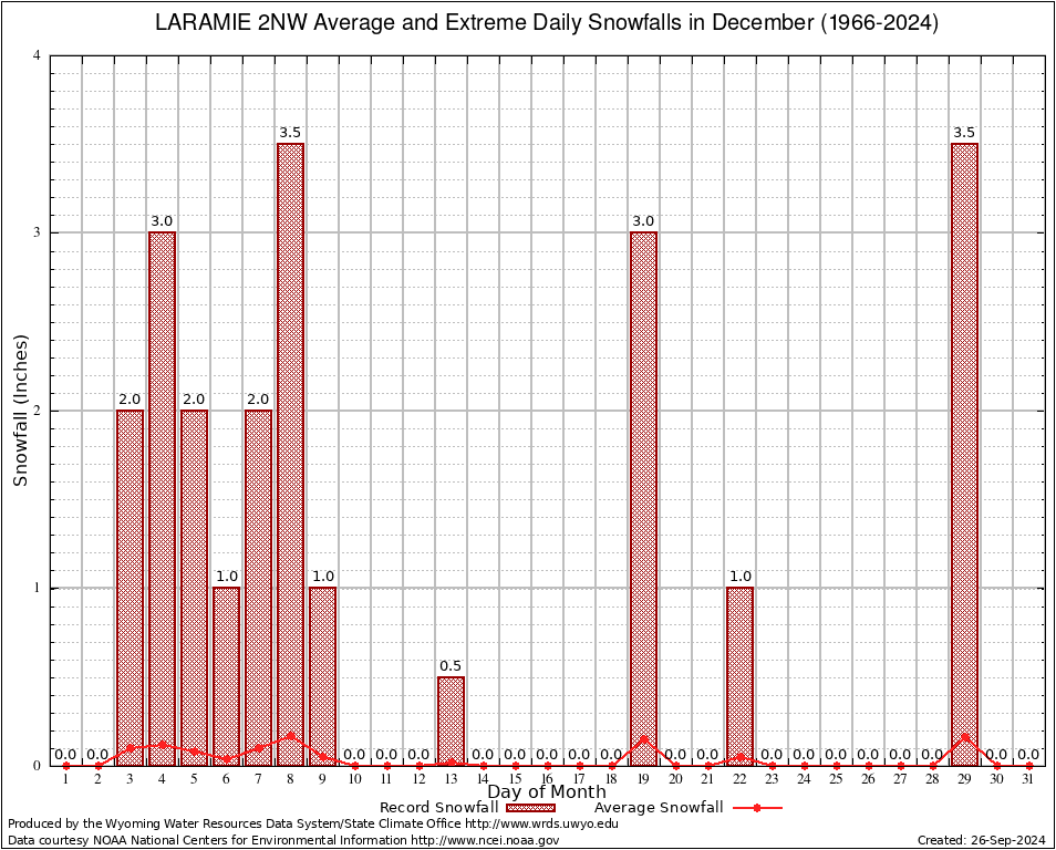 December Average and Extreme Daily Snowfall AMounts (1966-2024)