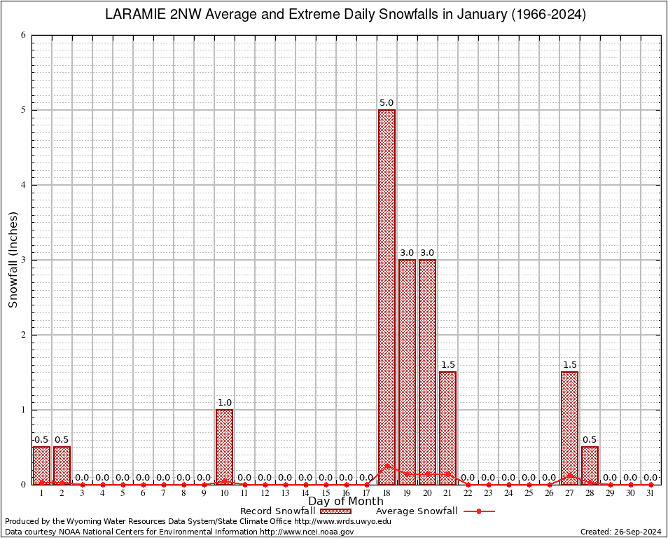 January Average and Extreme Daily Snowfall AMounts (1966-2024)